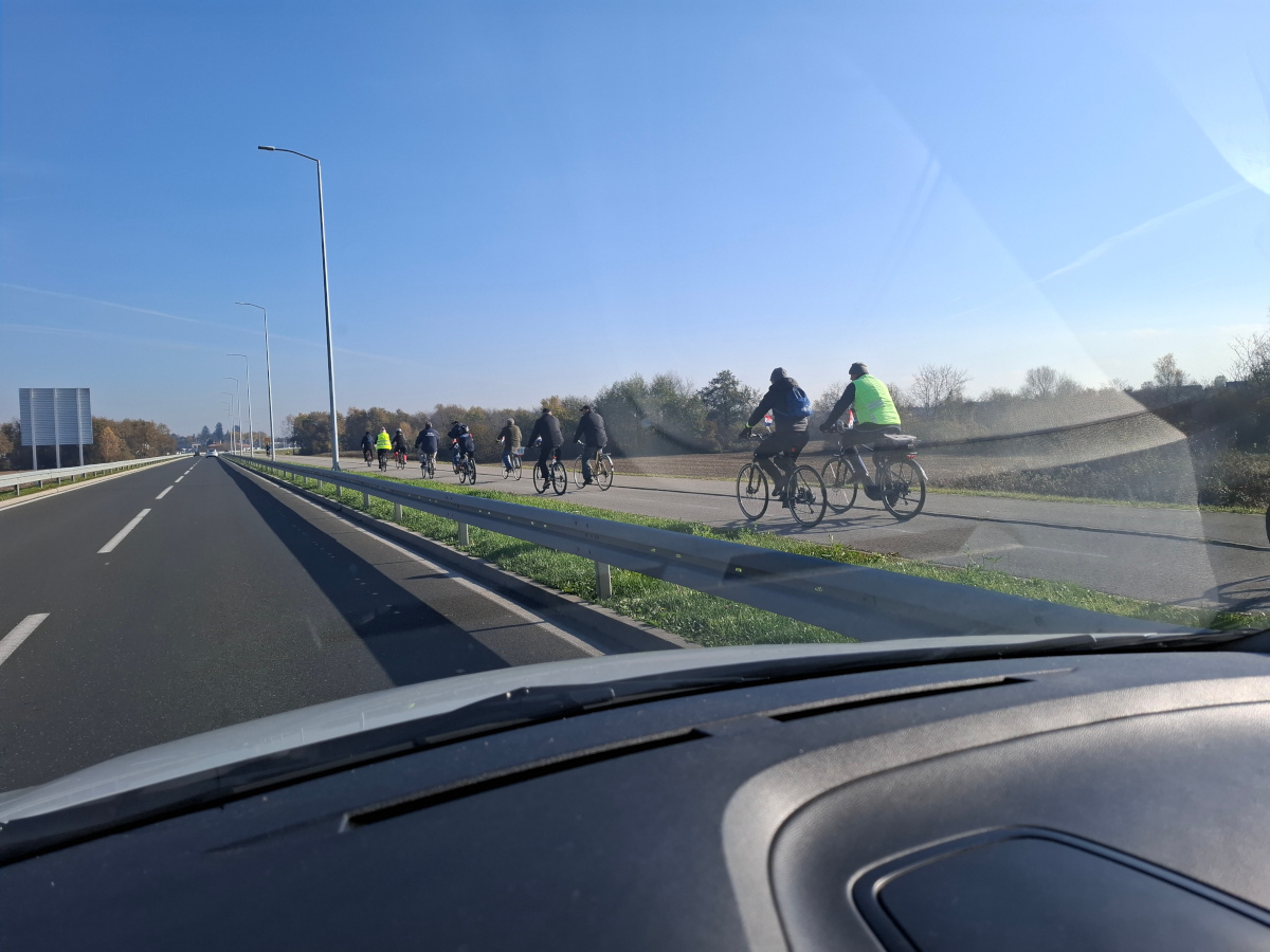 Biciklisti s hrvatskim zastavicama na biciklima u pratnji biciklistice PUM su startali simbolično ispred zagrade PUM, u kojoj je 1991. bilo smješteno Zapovjedništvo HV za Međimurje i Policije i odakle se rukovodilo akcijama oslobođenja Međimurja 1991. godine. Prva stajanka je bila na kružnom toku na početku Vukovarske ulice u Čakovcu, gdje su učesnici biciklijade zapalili 33 svijeće za 33 godine sjećanja na žrtvu Vukovara i Škabrnje. Potom su biciklisti odvezli krug oko Čakovca simbolizirajući zajedništvo Međimuraca u dobru zlu, do bivše vojarne. U sjećanje su kod naziva ulice 34. inženjerijske bojne učesnici biciklijade odali pijetet poginulim i umrlim pripadnicima proslavljene 34. inženjerijske bojne, jedne od tri ratne postrojbe iz Međimurja koje su prošle hrvatska ratišta.