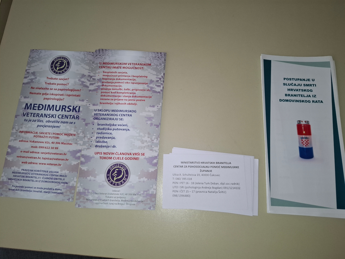 Predstavljena je projekta aktivnost „Međimurski veteranski centar“ koju provodi Društvo VETERAN kao jedino savjetovalište i pomoć hrvatskim braniteljima i članovima njihovih obitelji u potrebi u Međimurskoj županiji.